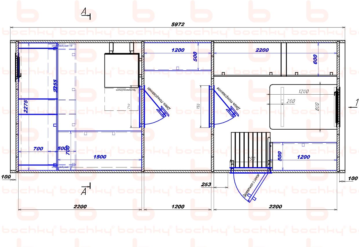 | Длина раздевалки (внутренний размер) | 2200 мм |